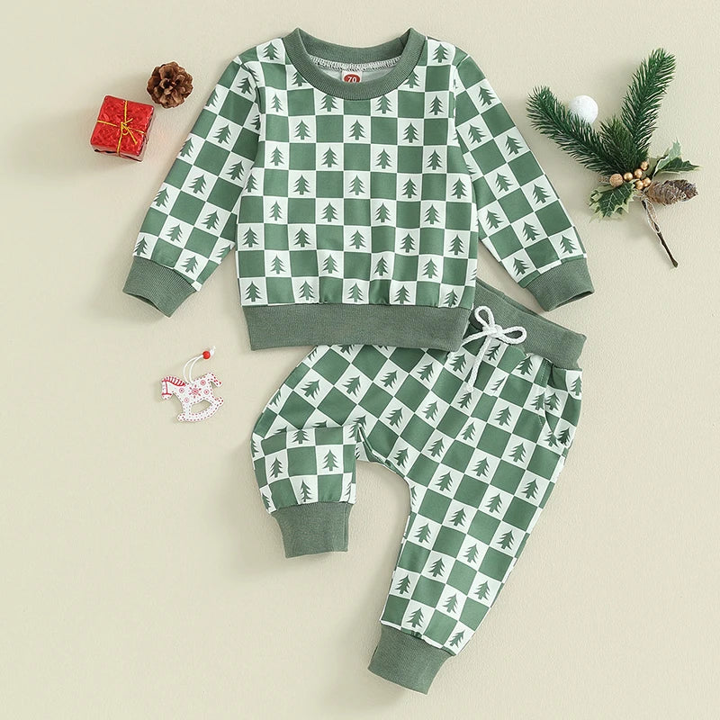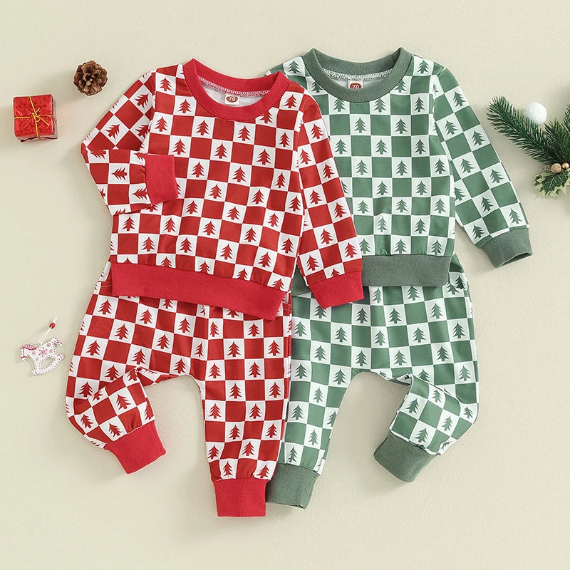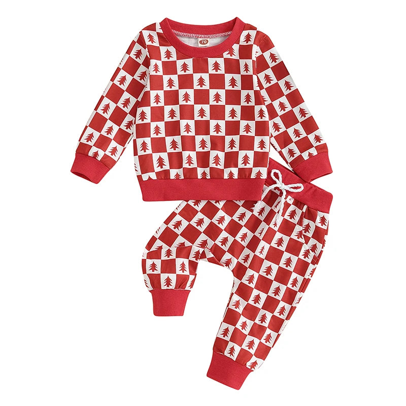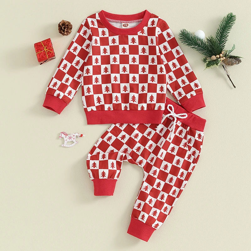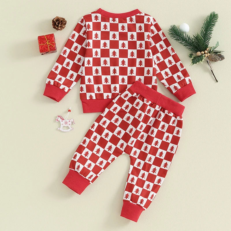 Toddler Christmas Clothes Set: Xmas Tree Plaid Sweatshirt and Pants