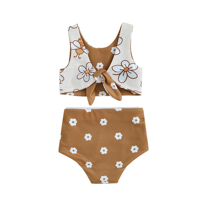Designed for toddlers, this swimsuit set offers both versatility and charm. The sleeveless camisole provides freedom of movement, while the elastic shorts offer a secure and comfortable fit. Whether she's splashing in the waves or building sandcastles on the shore, she'll look cute and stylish in this charming swimwear ensemble. Don't miss out on this must-have addition to her summer wardrobe – grab yours today and let the beach adventures begin!