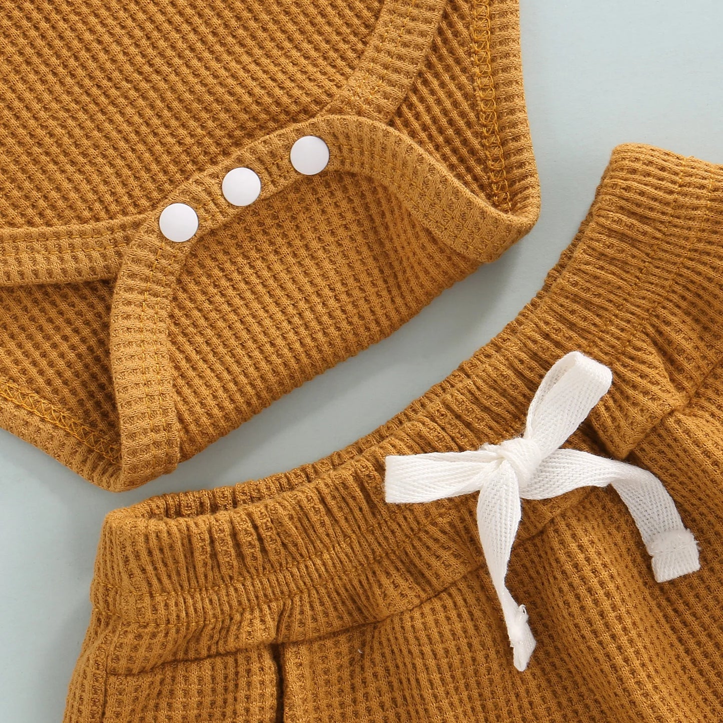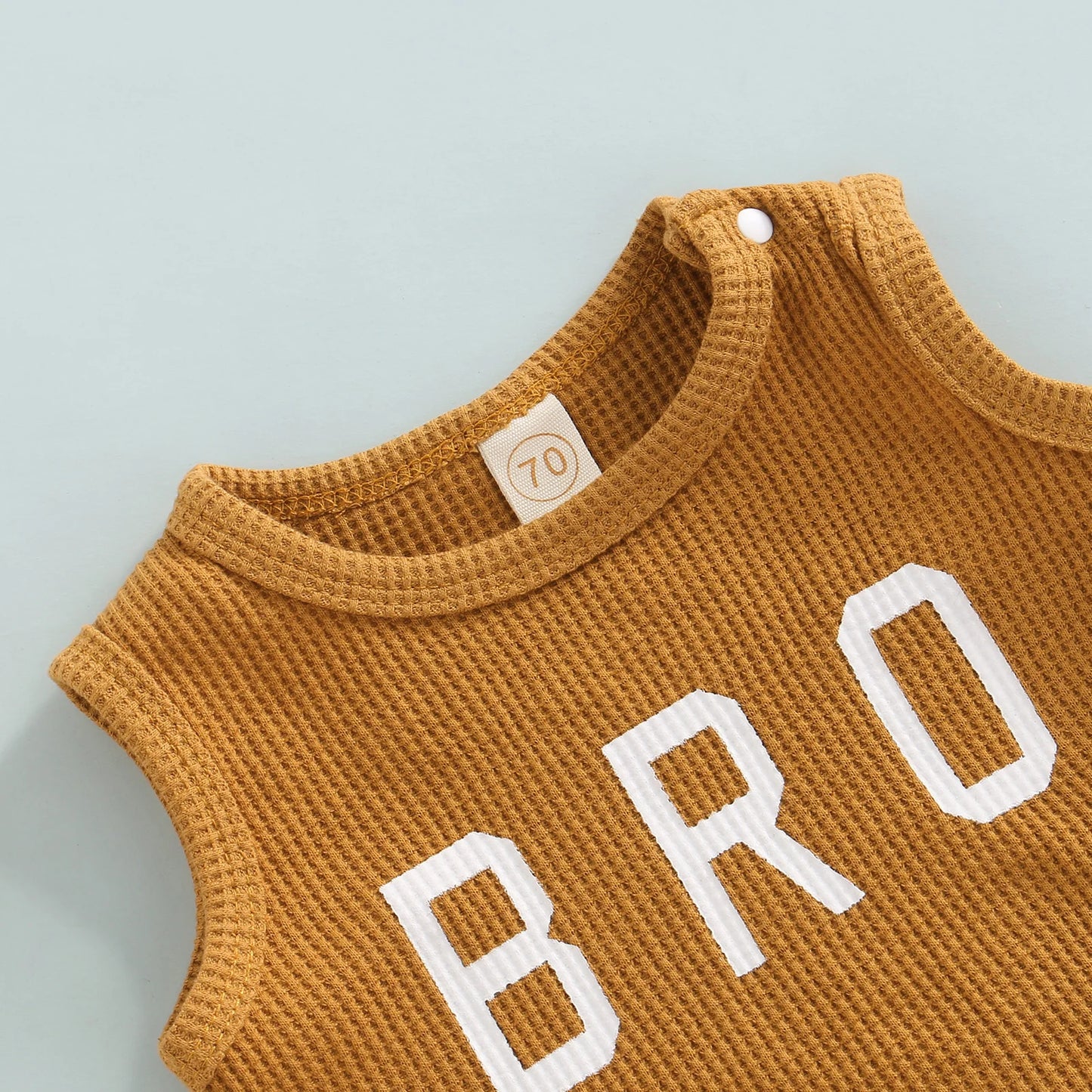 Dress your little ones in adorable summer style with our Toddler Girls Boys Summer Outfits. Perfect for children aged 0 to 18 months, this ensemble combines comfort and cuteness for sunny days ahead. The sleeveless romper features charming letter prints, adding a playful touch to your baby's outfit. Paired with solid drawstring shorts, this set ensures freedom of movement and easy adjustment for a comfortable fit.