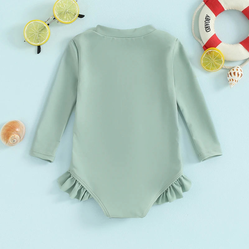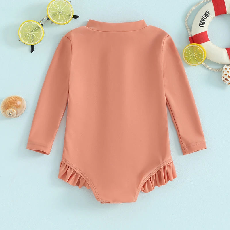 Toddler Girls Long Sleeve Rash Guard Swimsuit Romper with Ruffles