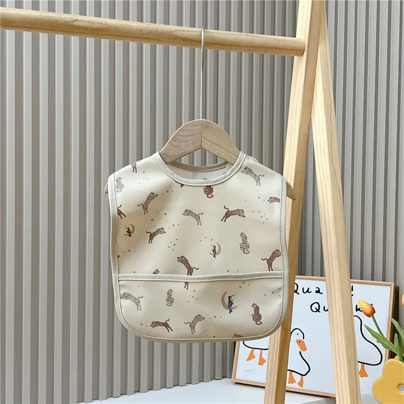 Introducing our waterproof cartoon baby bibs with a convenient pocket, designed for newborns, infants, and toddlers. Crafted with practicality and style in mind, these bibs feature adorable cartoon designs that appeal to both boys and girls. The waterproof fabric ensures that spills and stains are contained, keeping your baby's clothing clean and dry during feeding.