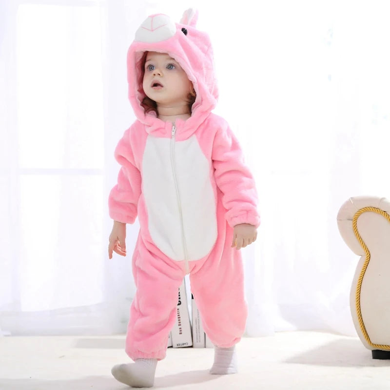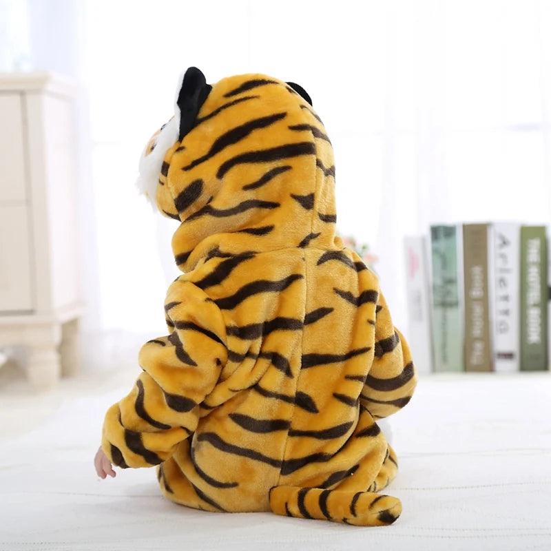 Keep your little one warm and adorable with our Winter Baby Cartoon Animal Hoodie Bodysuit. This cozy onesie jumpsuit is perfect for boys and girls aged 0-3 years, featuring a cute cartoon animal design and thicken plush fabric for extra warmth.