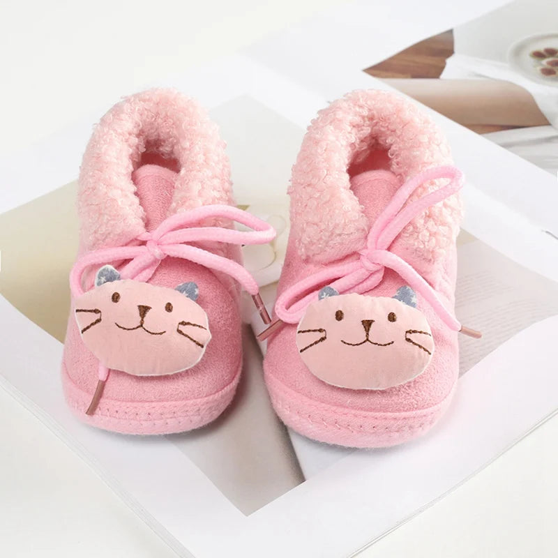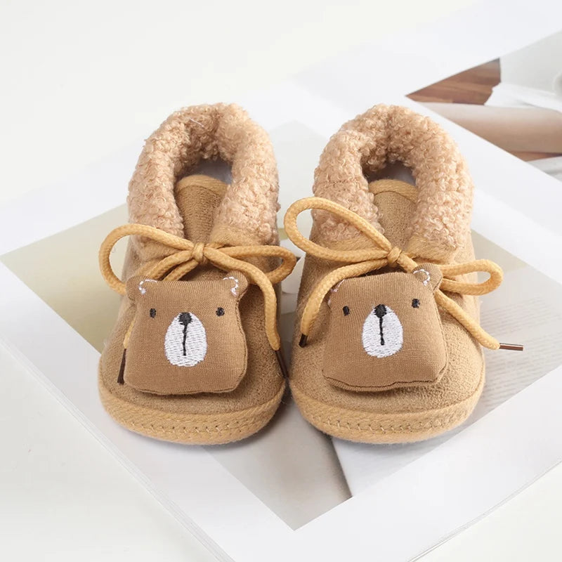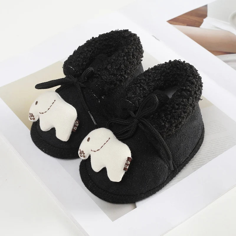 Crafted with a soft sole and cozy fur lining, these boots offer gentle support and insulation against the cold weather. The adjustable closure ensures a snug fit, making them suitable for both newborns and toddlers taking their first steps.