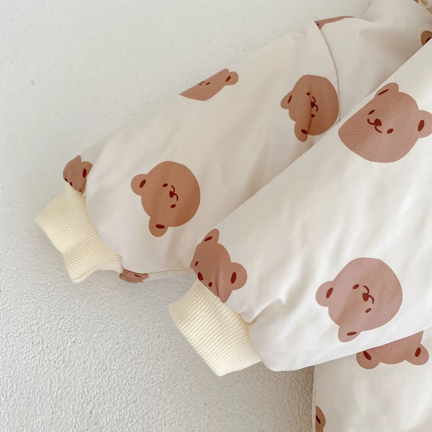 Keep your little one cozy and stylish this winter with our Winter Hooded Zipper Romper Coat. Crafted with warmth and comfort in mind, this romper features a plush velvet lining to ensure your baby stays snug and warm during the coldest months. The hooded design provides extra protection from the cold, while the long sleeves offer full coverage. The adorable bear print adds a playful touch to your baby's outfit, making it perfect for outdoor adventures and family outings.