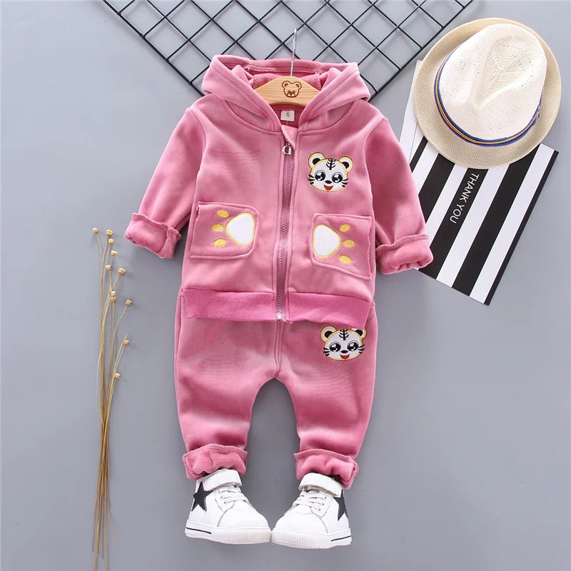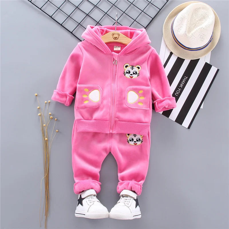 Winter Plush Cotton Clothing Set for Baby Girls - Withstand Severe Cold