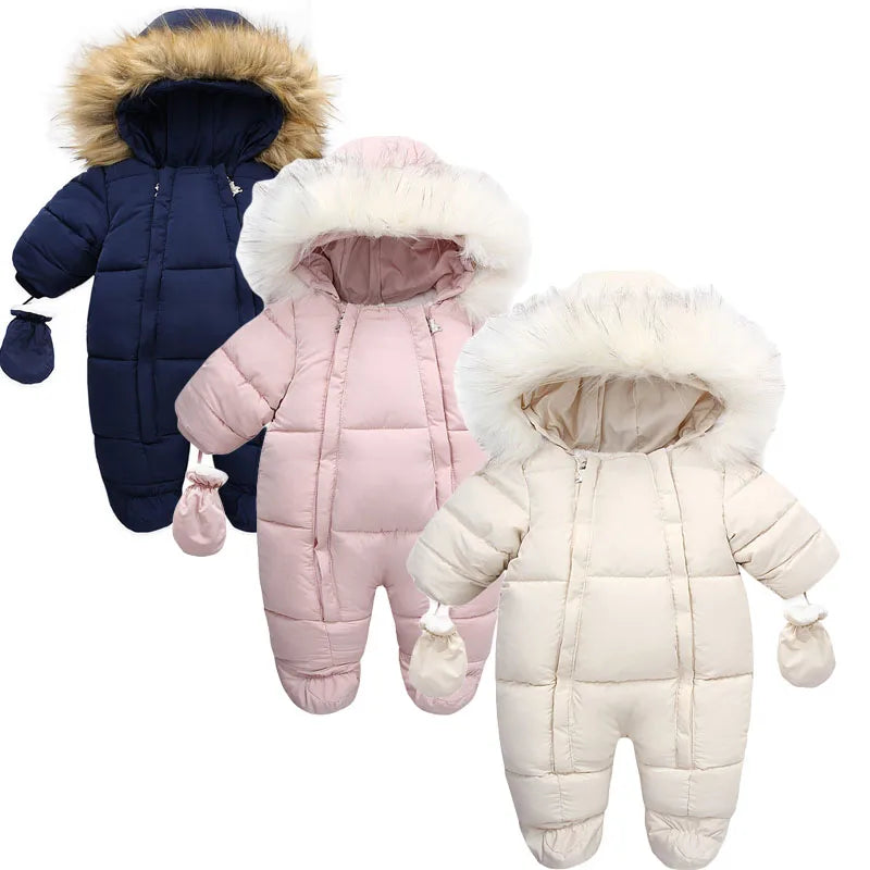 Crafted with care, these snowsuits come with gloves to ensure your baby's hands stay warm and protected from the cold. Perfect for both boys and girls, these outfits offer exceptional comfort and insulation, making them ideal for outdoor adventures in freezing temperatures.