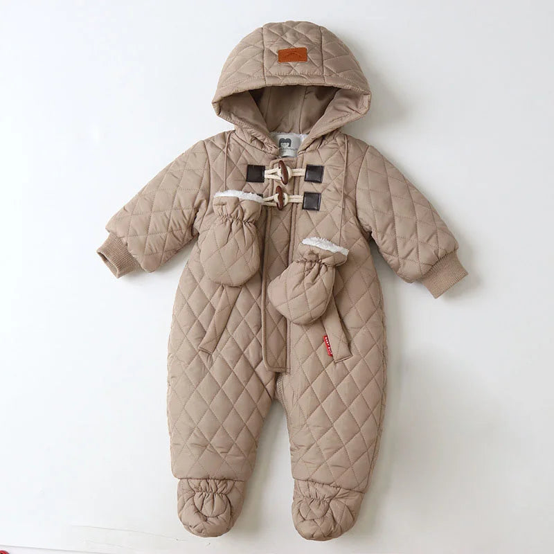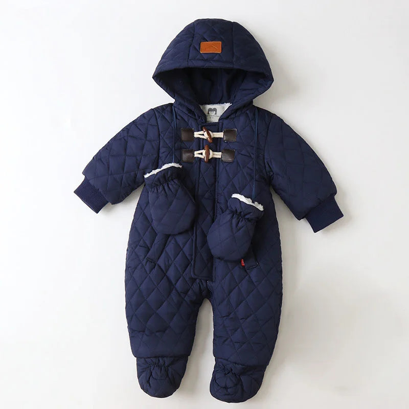 Winter Thicken Warm Snowsuits with Gloves - Baby Hooded Bodysuits Plus Velvet Sets