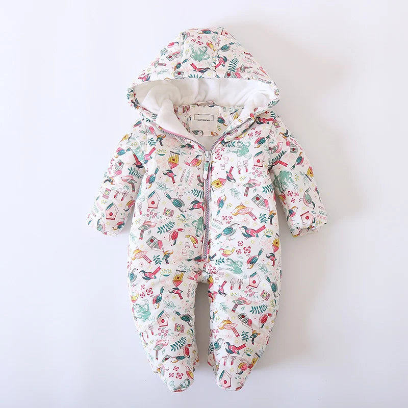 Keep your little one snug and cozy in extreme cold with our -30°C Winter Thicken Warm Snowsuits with Gloves. These hooded bodysuits, lined with plush velvet, provide ultimate warmth and protection for your baby during chilly weather.