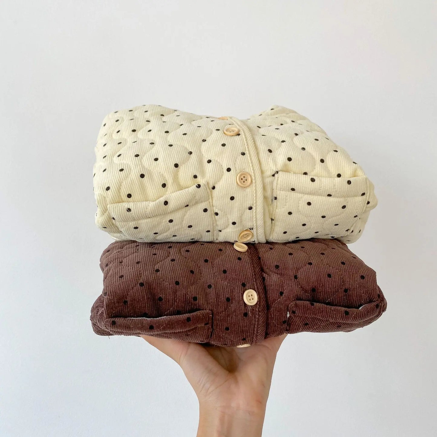 Keep your little one warm and stylish during the winter months with our Winter Thickened Baby Hooded Jacket. This cozy corduroy cardigan features a charming polka dot design, perfect for both baby boys and girls.