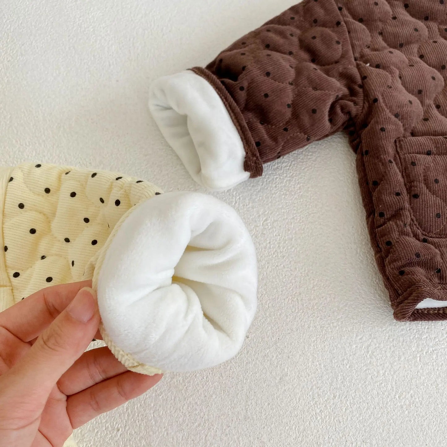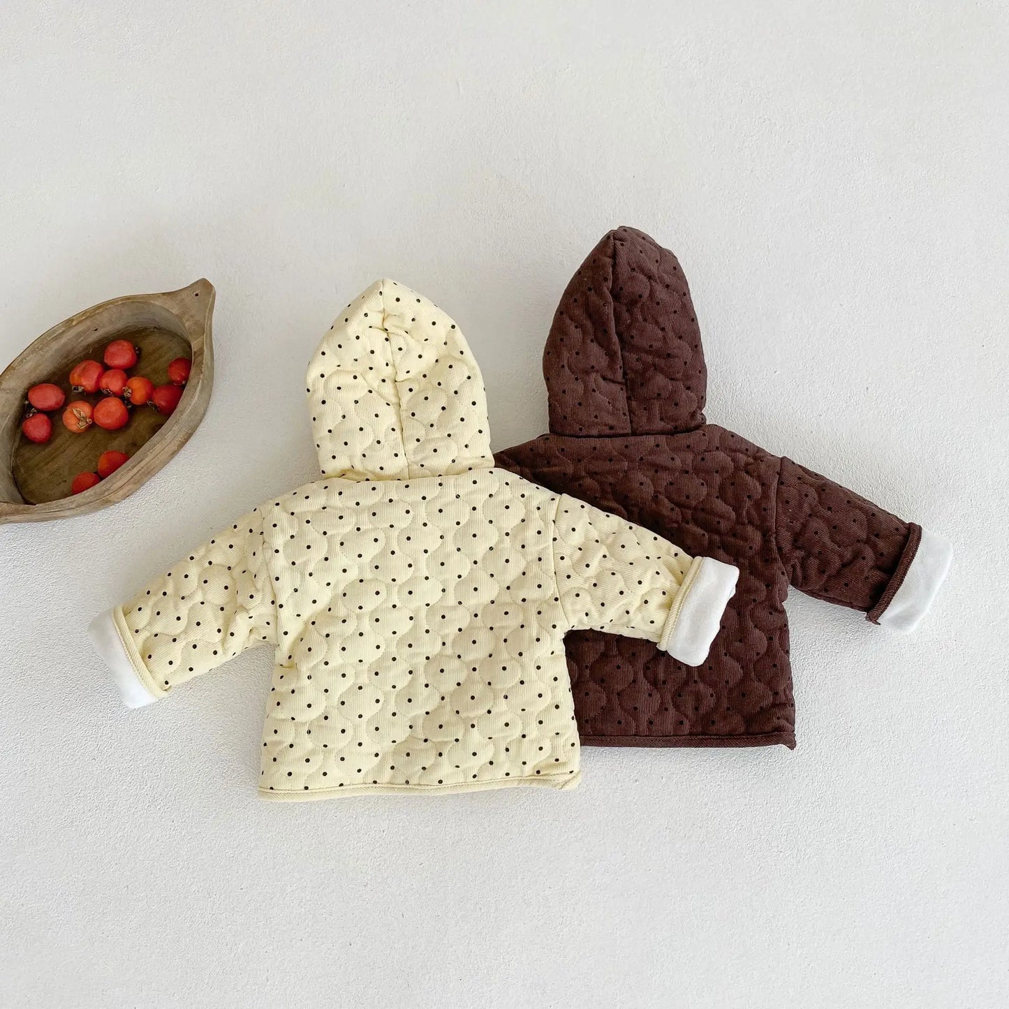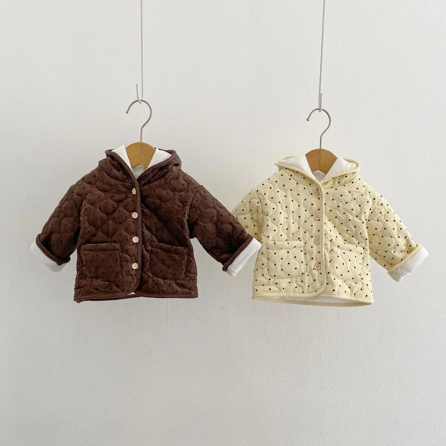 Winter Thickened Baby Hooded Jacket - Corduroy Cardigan with Polka Dot Design